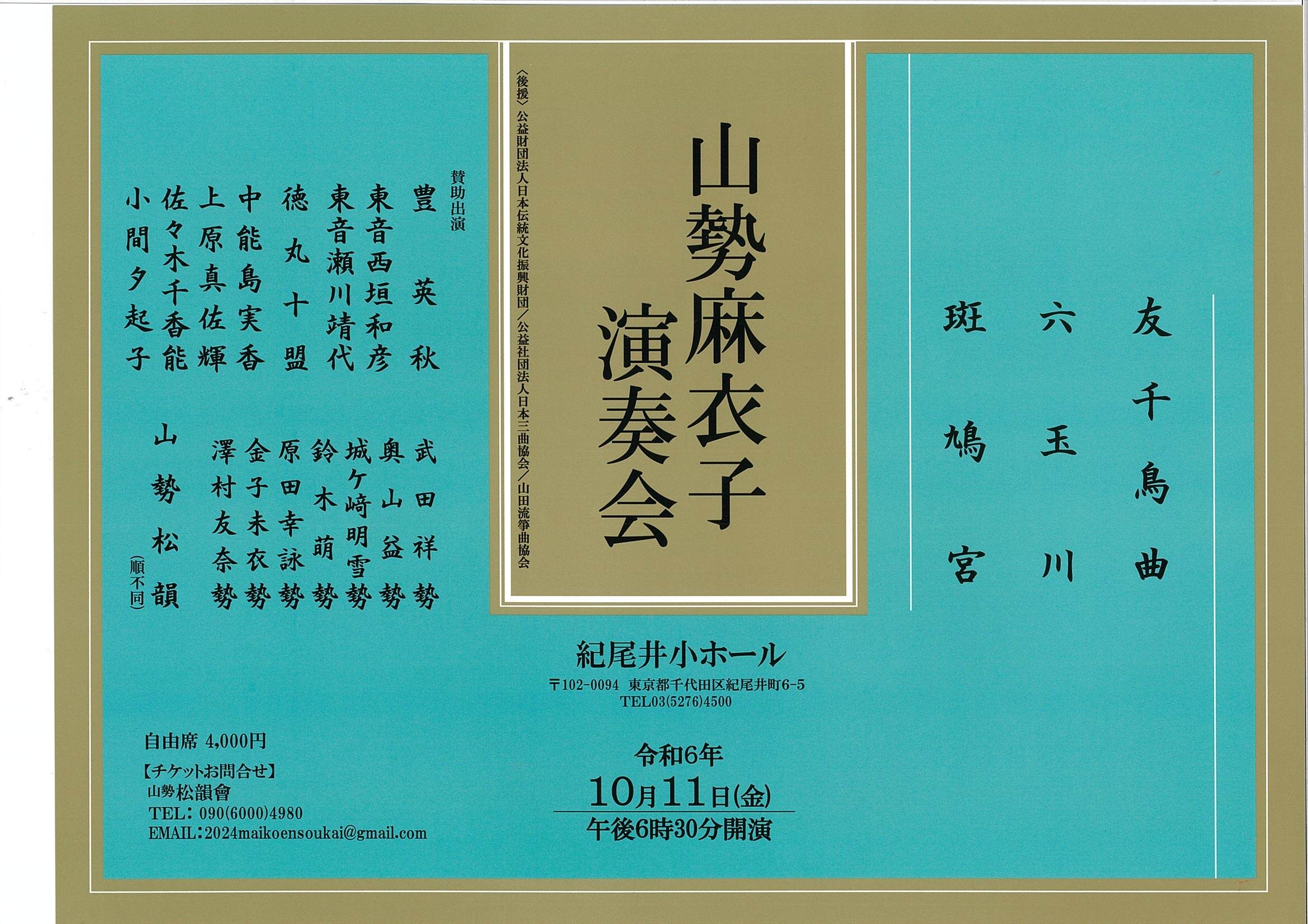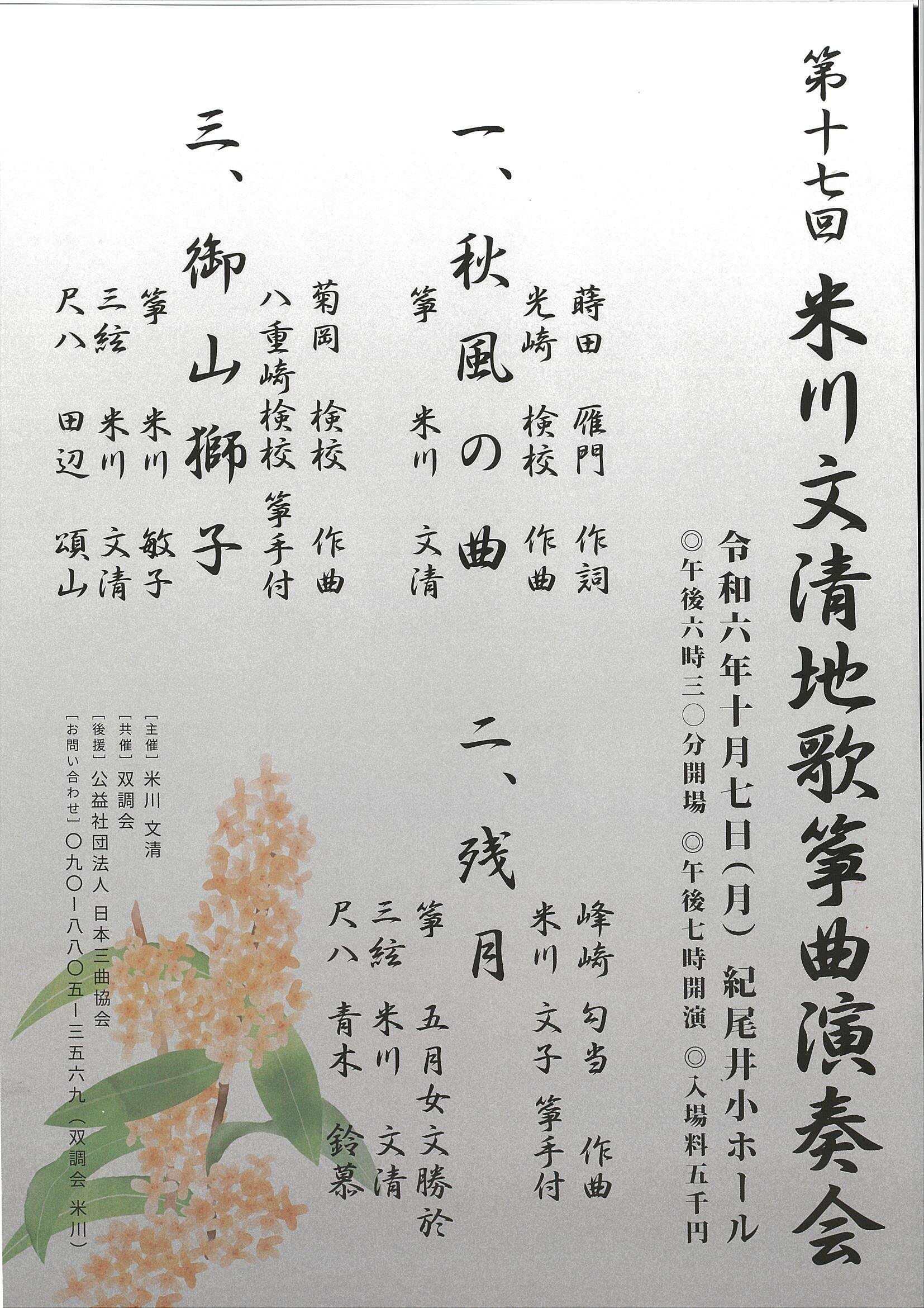 | 後援 | 公益財団法人 日本伝統文化振興財団 / 公益社団法人 日本三曲協会 |