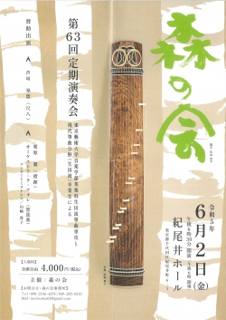 東京藝術大学音楽学部邦楽科生田流箏曲専攻と 現代箏曲分野(生田流)卒業生による 第63回 定期演奏会 森の会 |