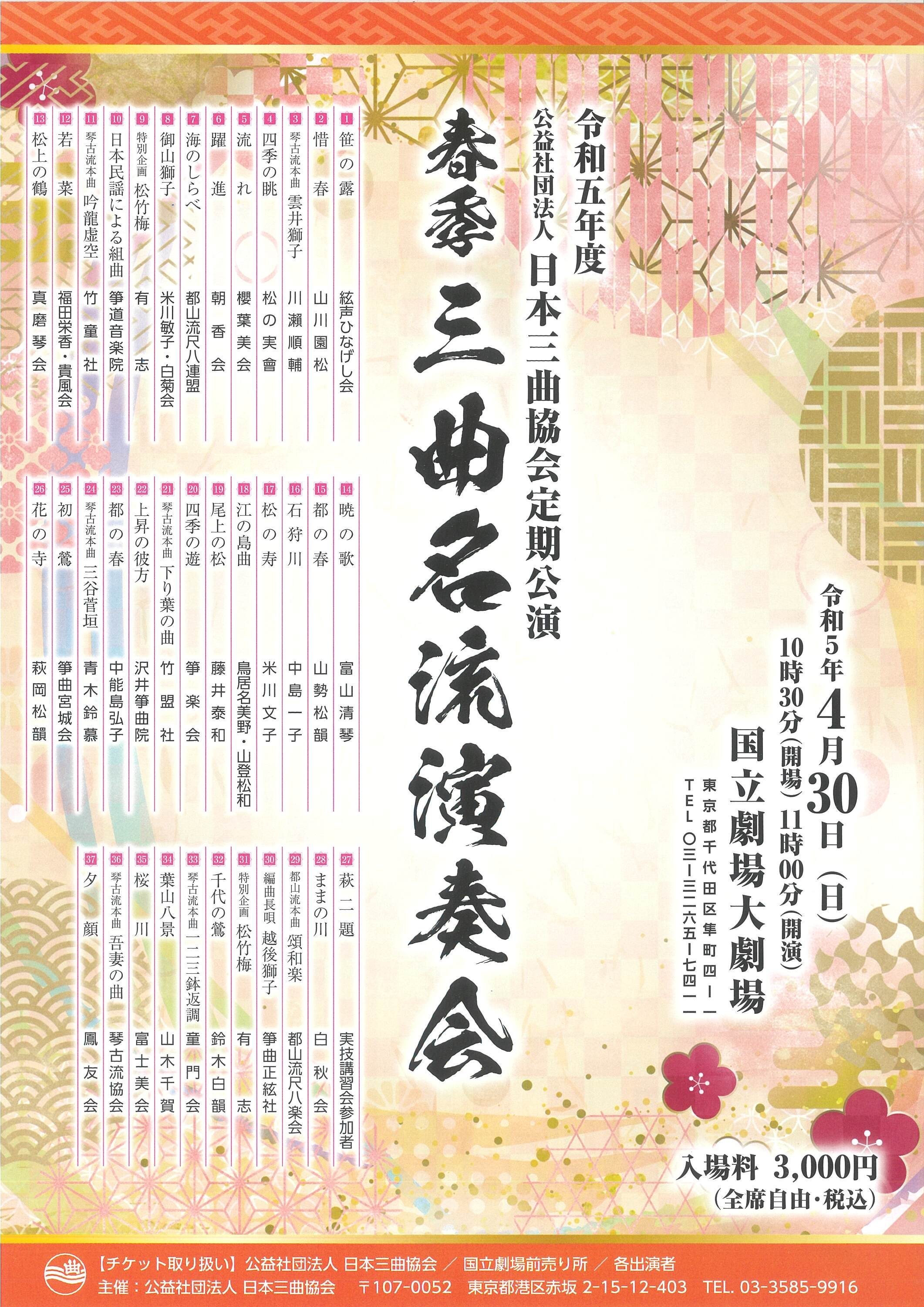 令和5年度 日本三曲協会定期公演 春季 三曲名流演奏会 |