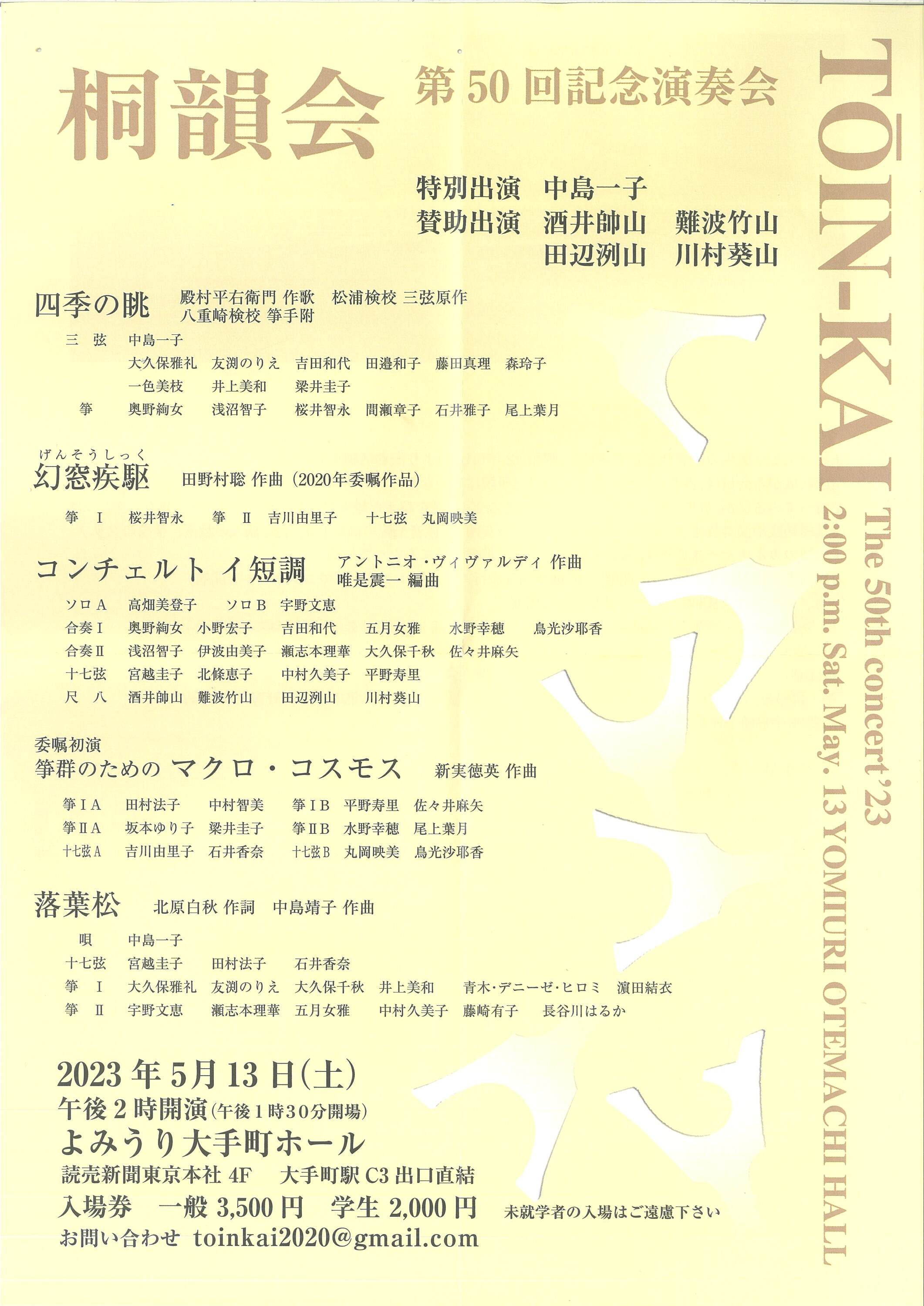 | 後援 | 中野区・東京新聞 / 公益社団法人 日本三曲協会 |