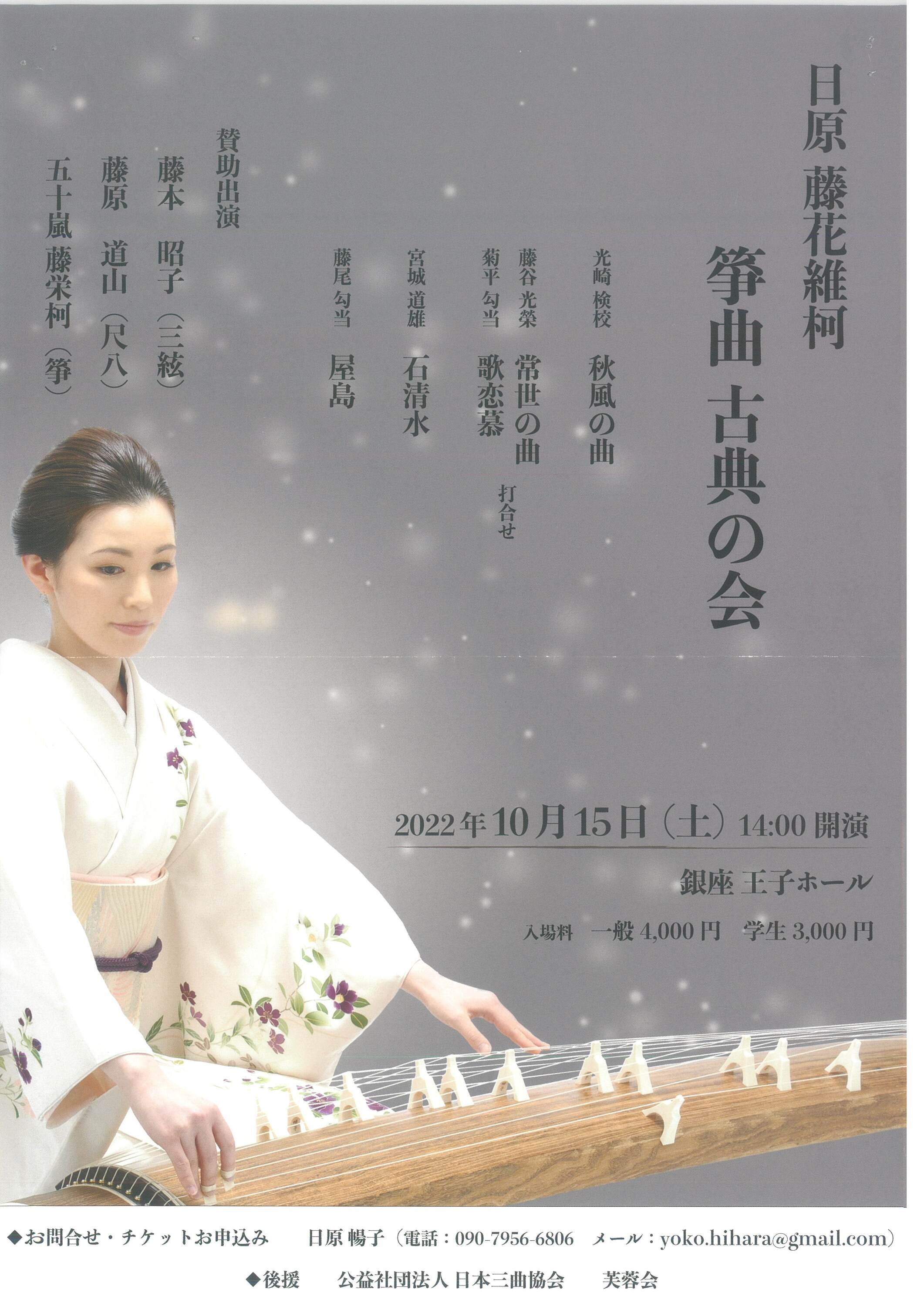| 後援 | 公益社団法人 日本三曲協会 / 芙蓉会 |