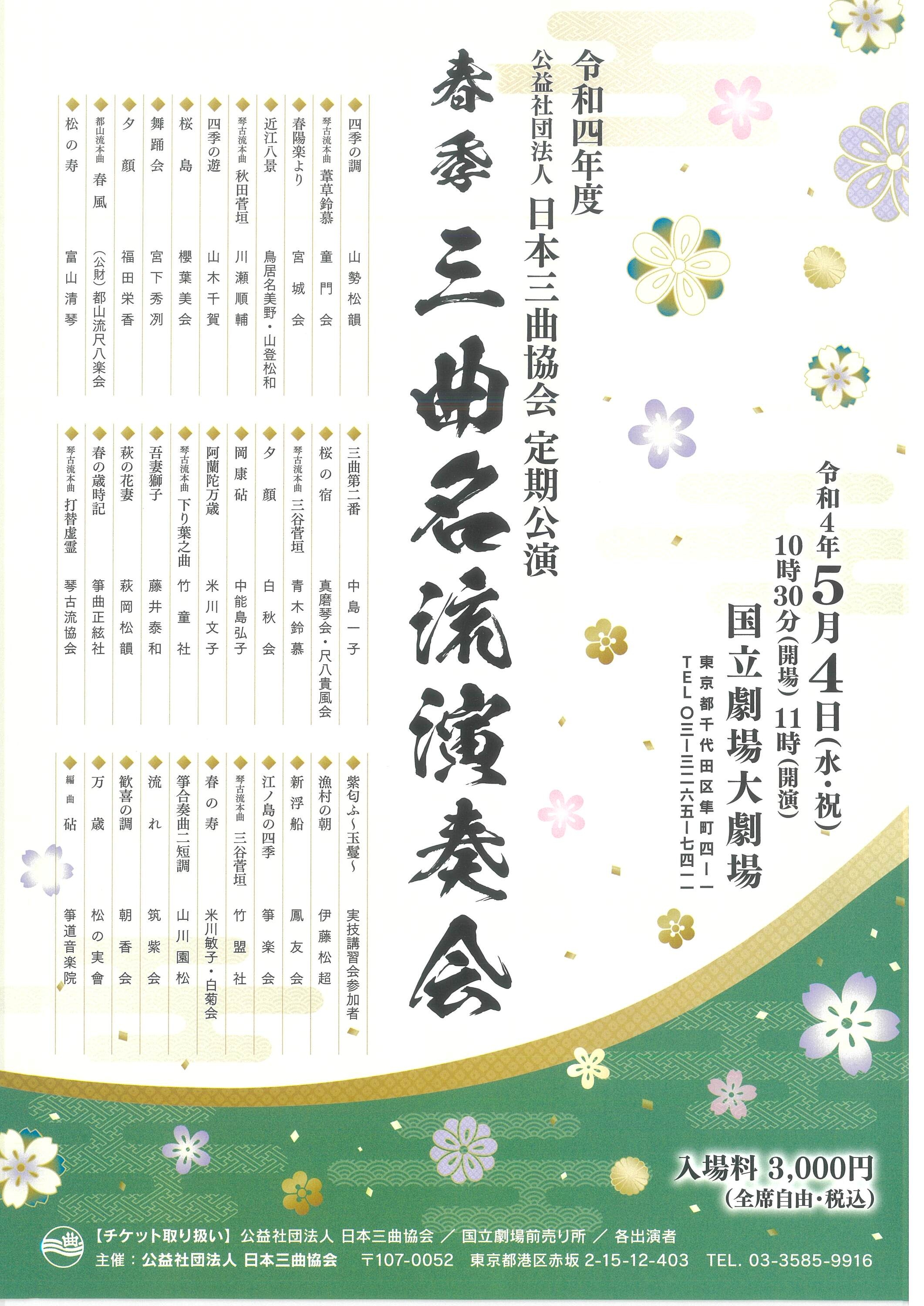 令和4年度 日本三曲協会定期公演 春季三曲名流演奏会