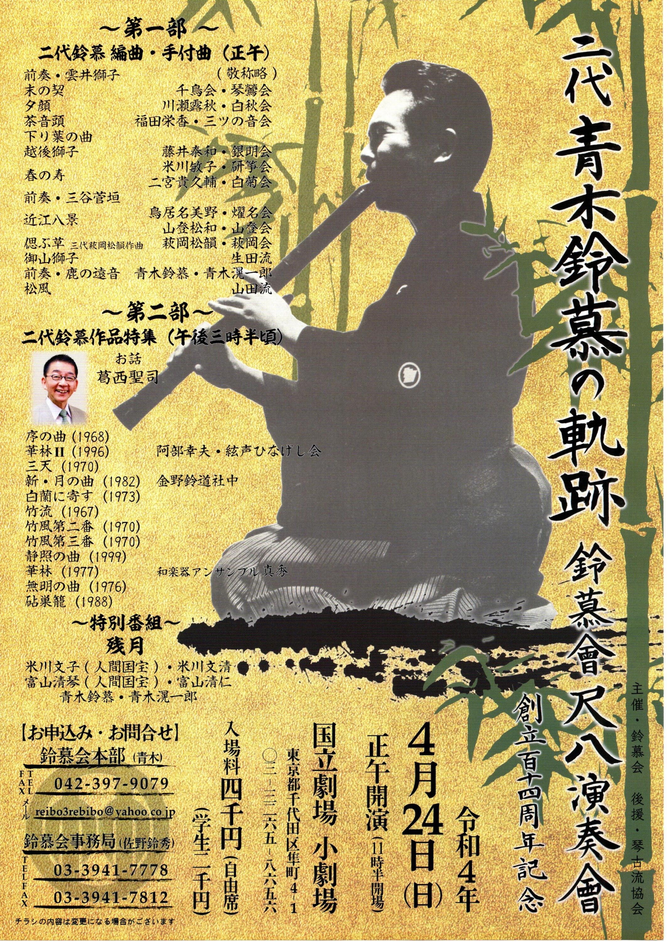 2代青木鈴慕の軌跡 鈴慕會 尺八演奏會 創立114周年記念