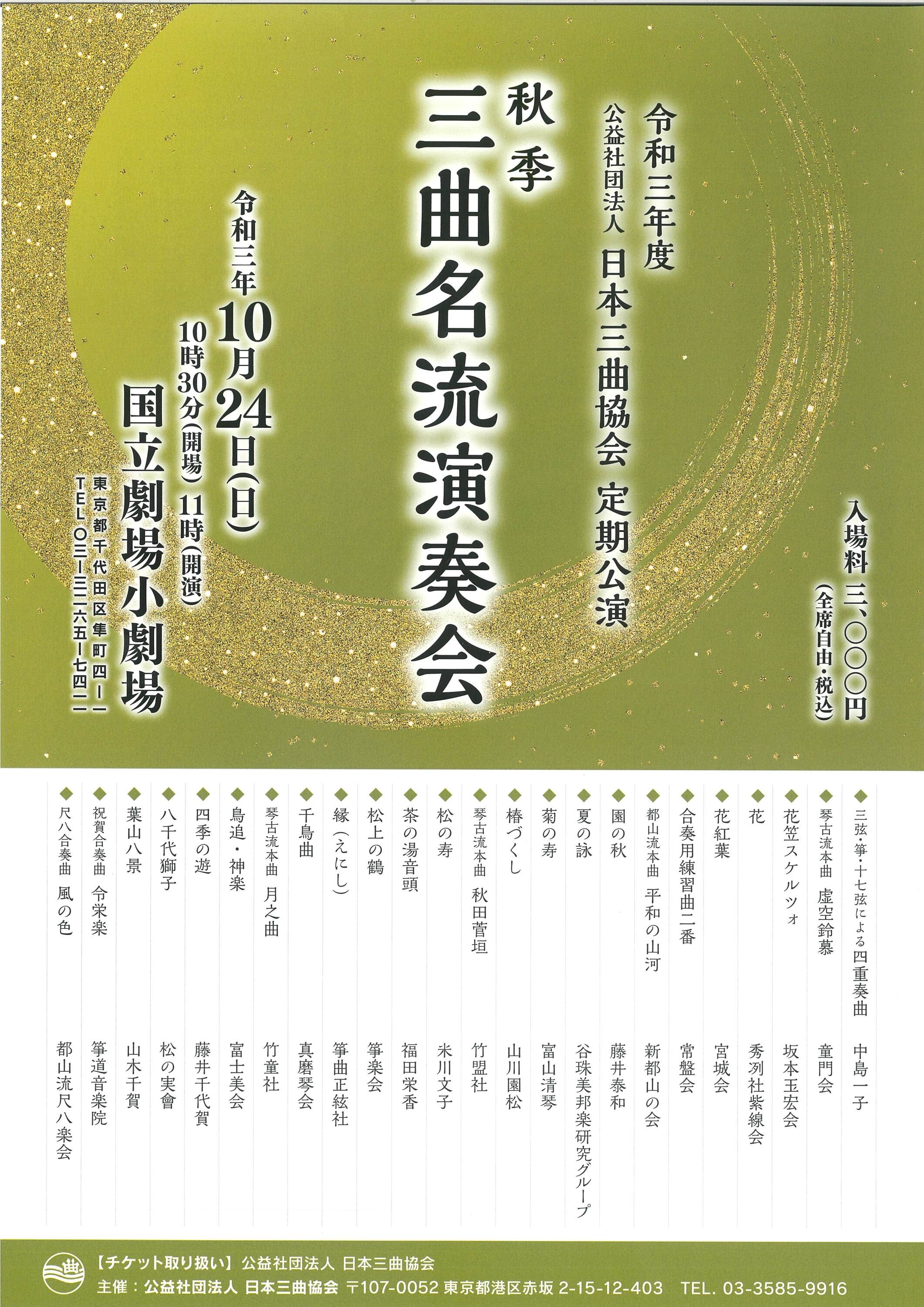 令和3年度 日本三曲協会定期公演 秋季三曲名流演奏会