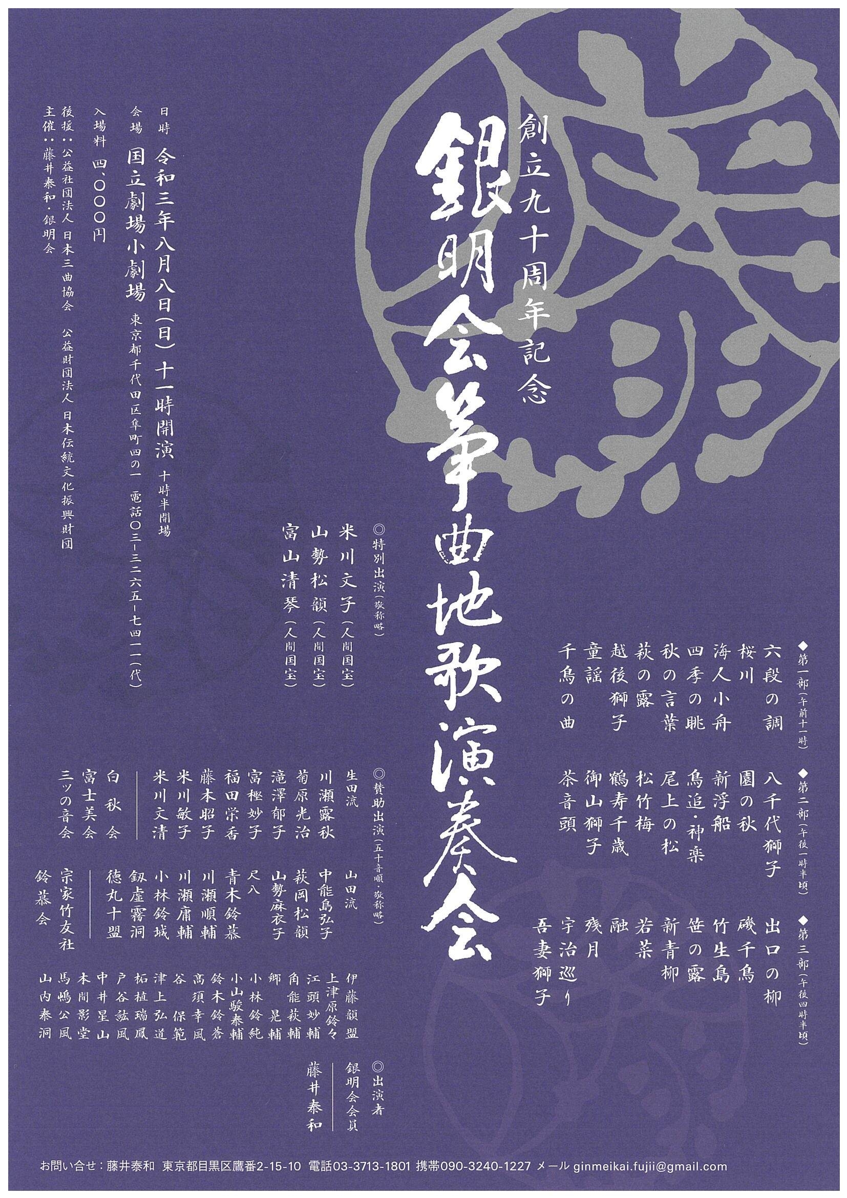 | 後援 | 公益社団法人日本三曲協会 公益財団法人日本伝統文化振興財団 |