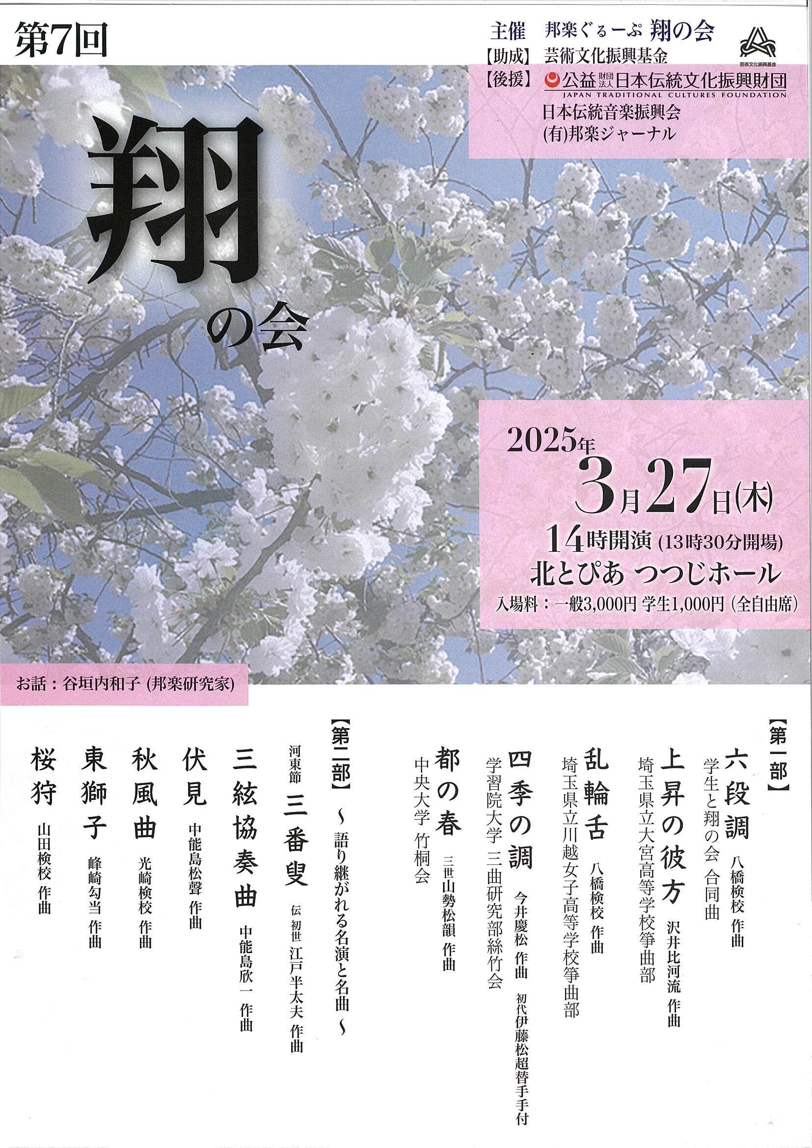 | 後援 | 公益社団法人 日本三曲協会 / 公益社団法人 都山流尺八楽会 |