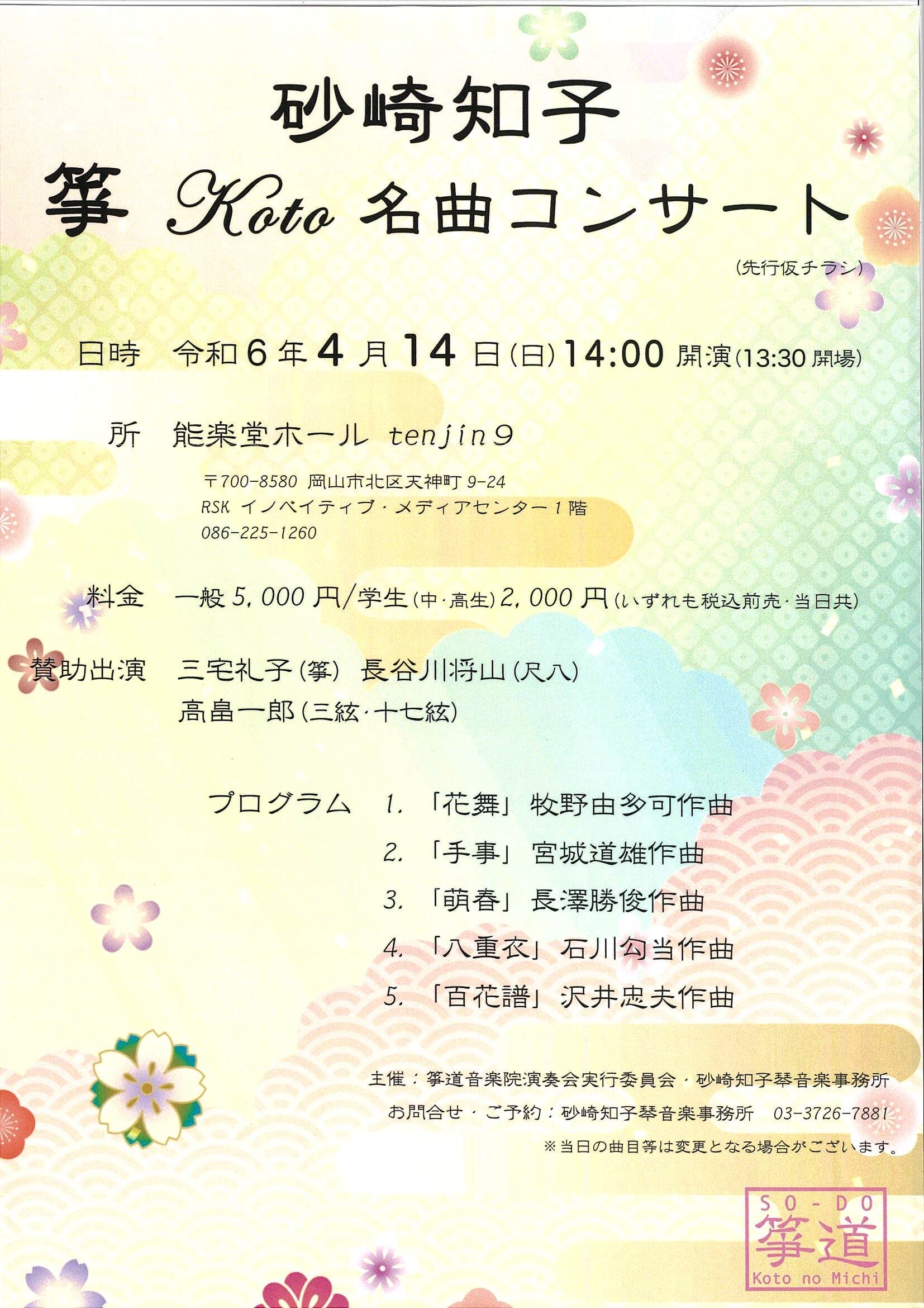 | お問い合わせ先 | 砂崎智子琴音楽事務所 03-3726-7881 |