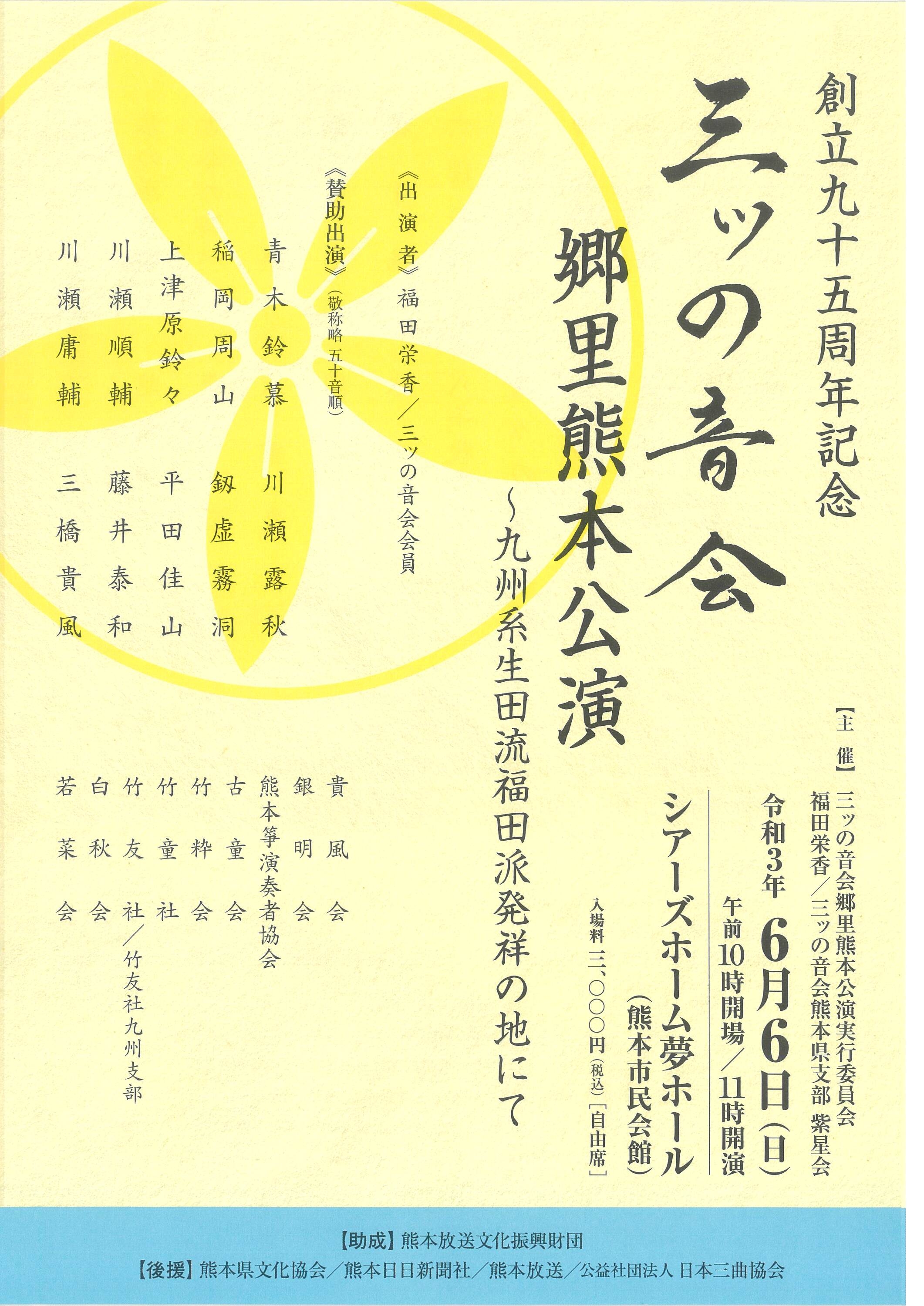 | 後援 | 熊本県文化協会 / 熊本日日新聞社 / 熊本放送 / 公益社団法人 日本三曲協会 |