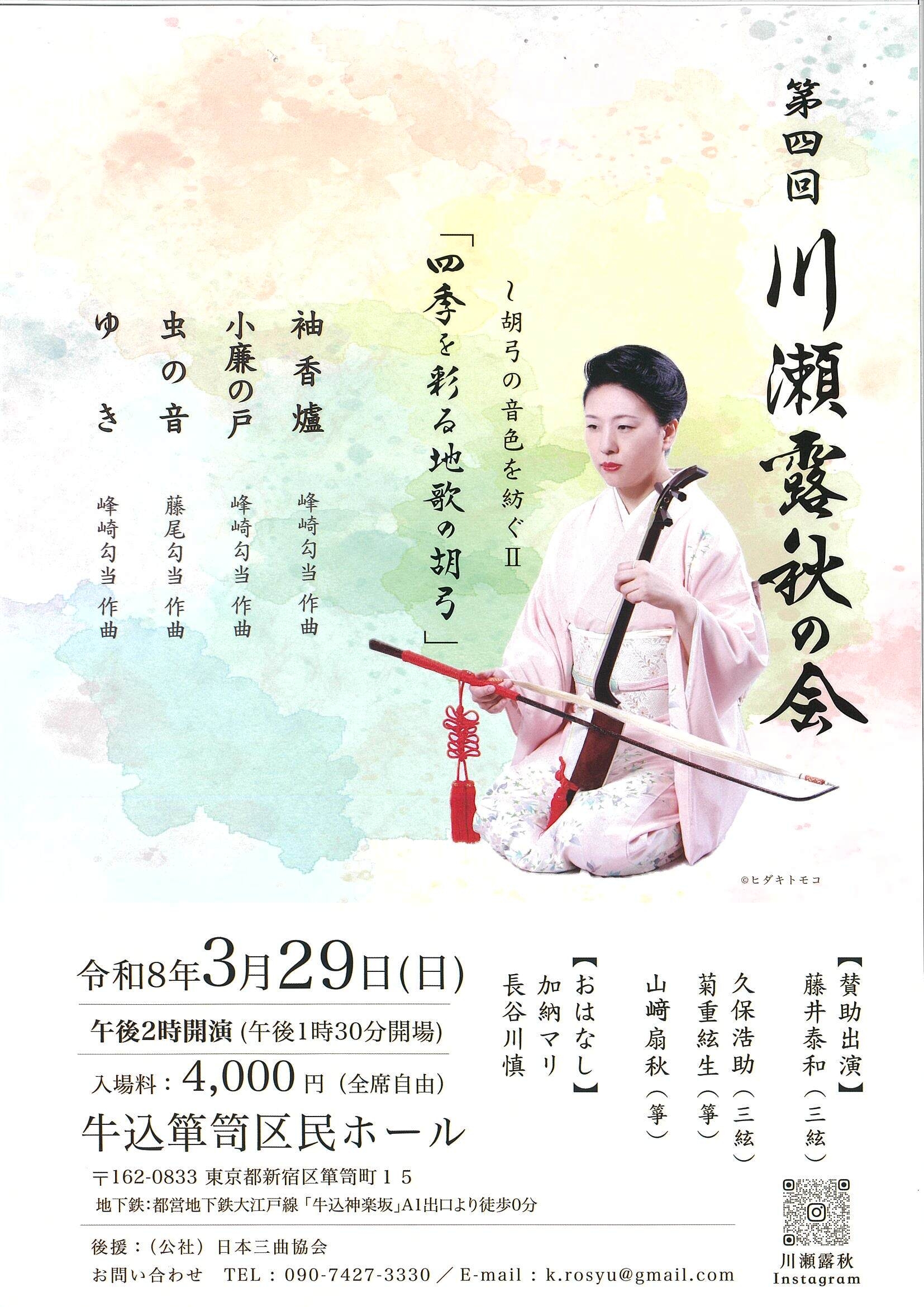 第4回川瀬露秋の会~胡弓の音色を紡ぐⅡ「四季を彩る地歌の胡弓」