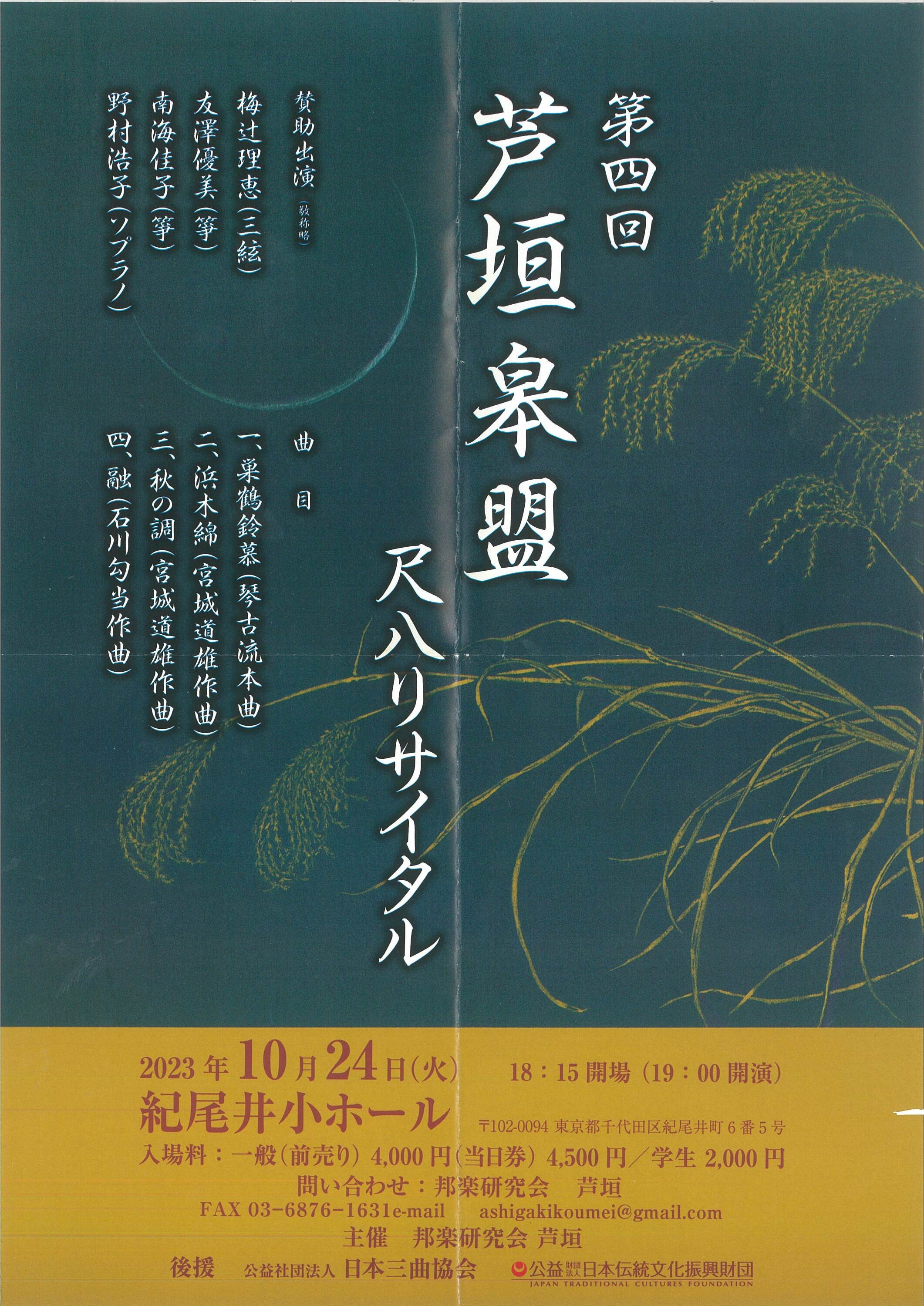 | 後援 | 公益社団法人日本三曲協会 / 公益財団法人日本伝統文化振興財団 / NPO法人小金井市文化協会 |