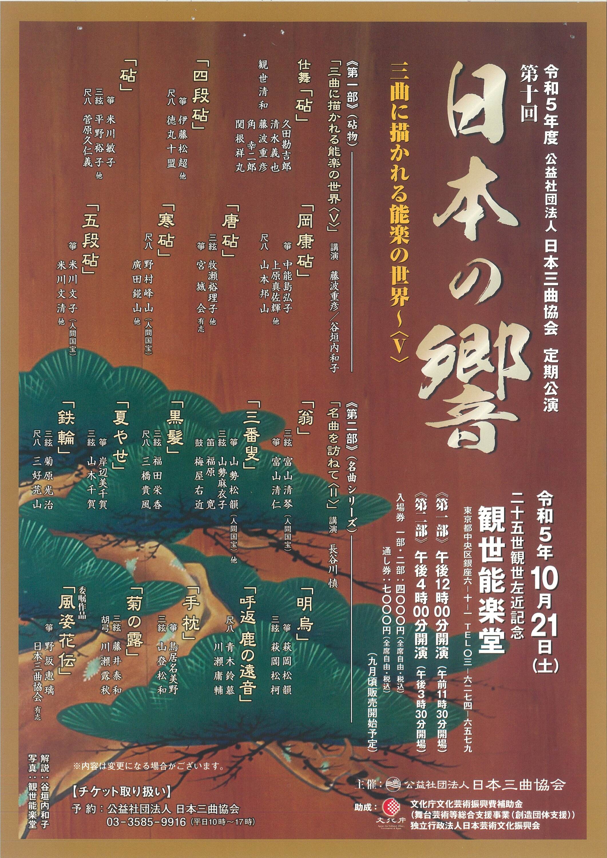 令和5年度 公益社団法人 日本三曲協会 定期公演 第10回 日本の響 三曲に描かれる能楽の世界~<Ⅴ>
