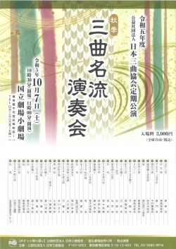 令和5年度 日本三曲協会定期公演 秋季 三曲名流演奏会 |