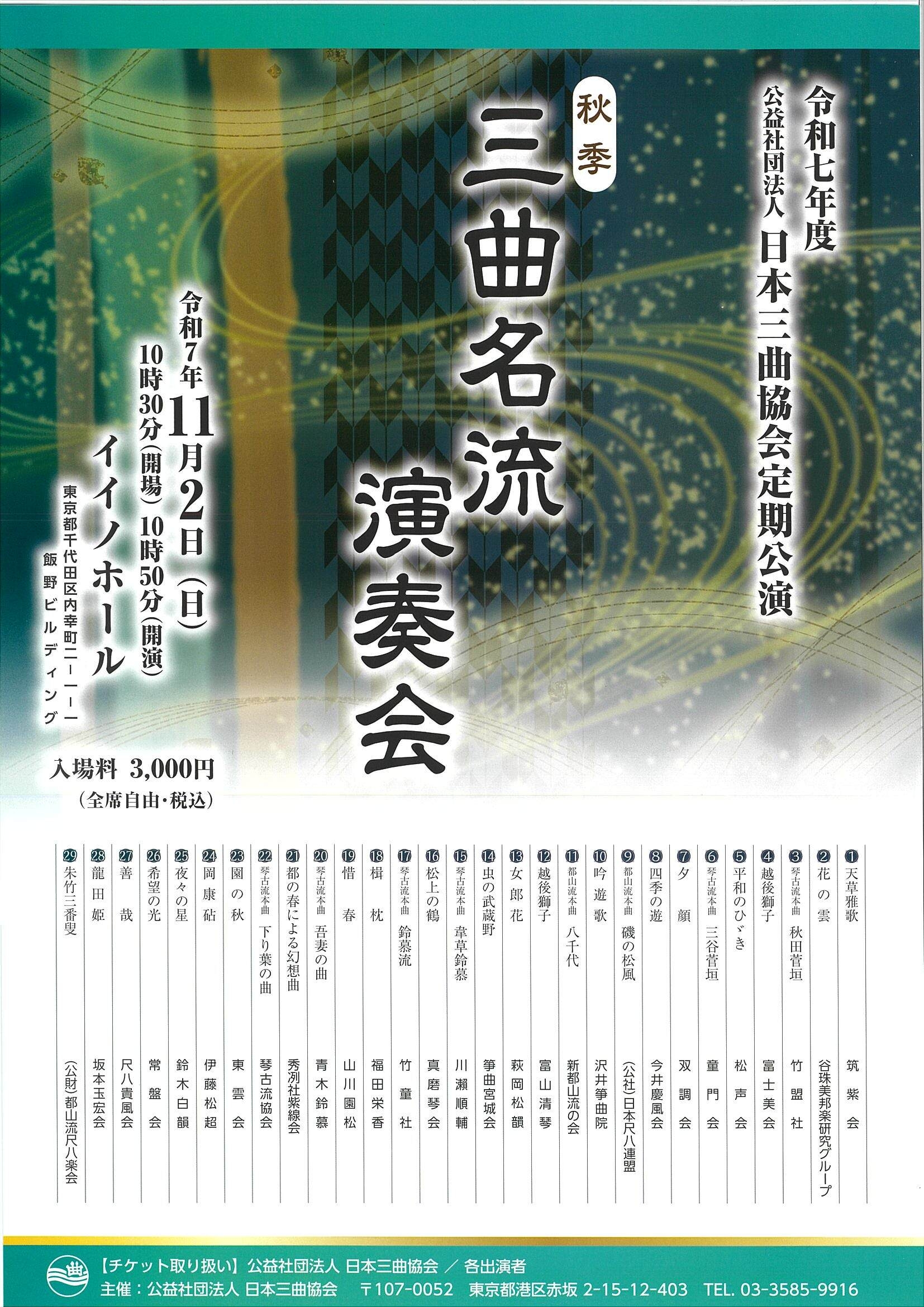 | 後援 | 公益社団法人 日本三曲協会 / 銀明会 |