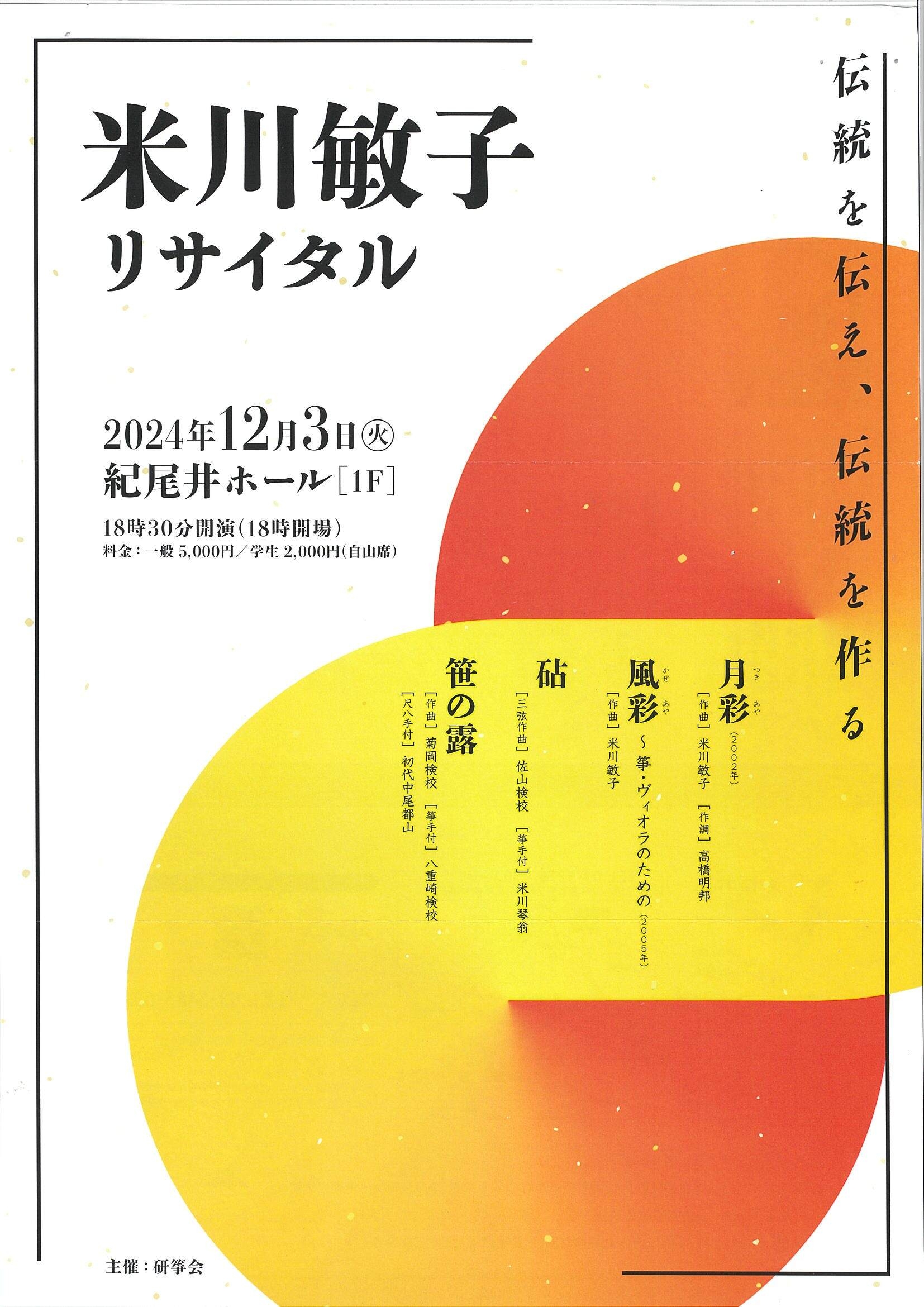 | 後援 | 公益財団法人 日本伝統文化振興財団 / 公益社団法人 日本三曲協会 |