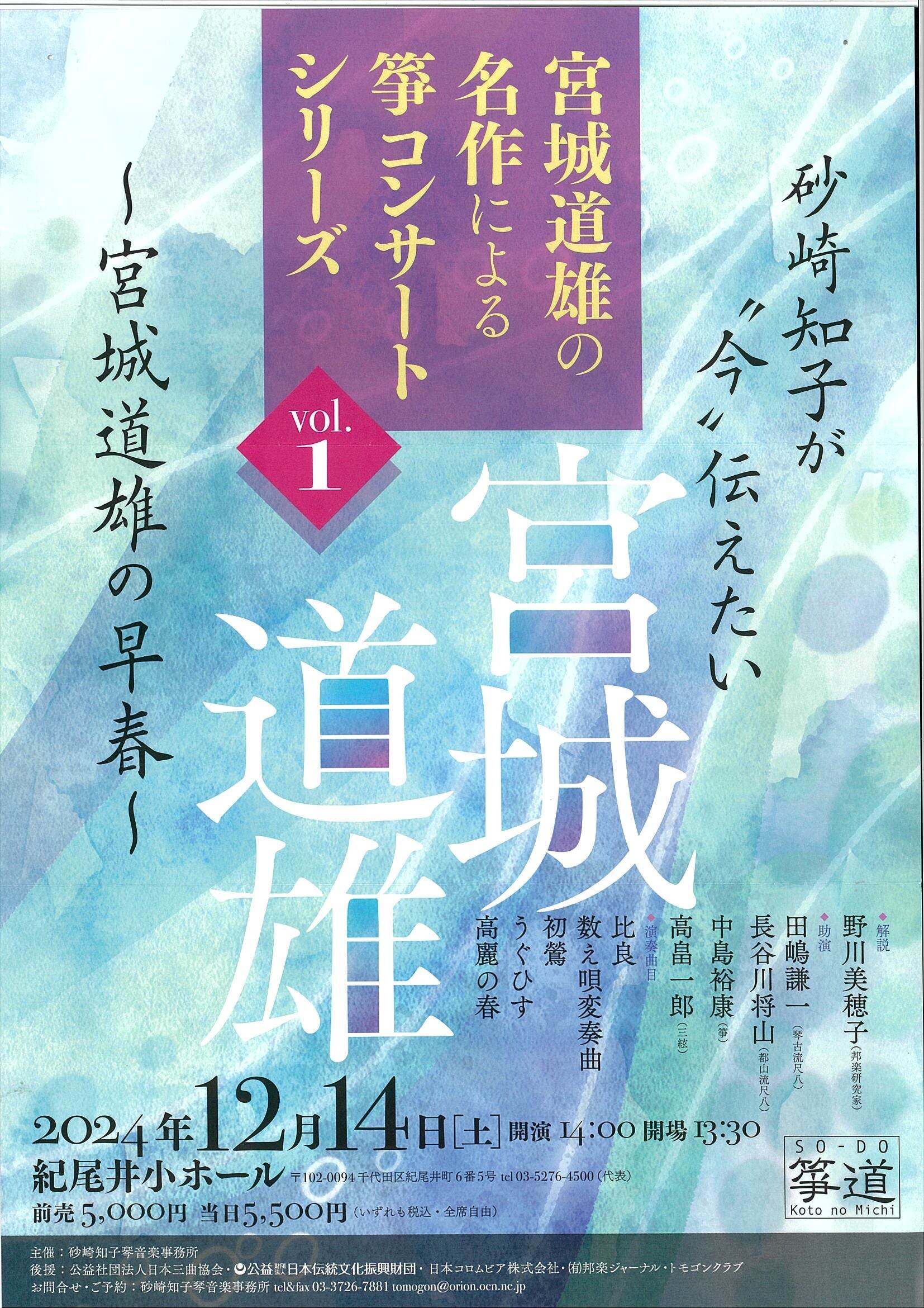 宮城道雄の名作による箏コンサートシリーズvol.1 砂崎知子が”今”伝えたい宮城道雄 ~宮城道雄の早春~