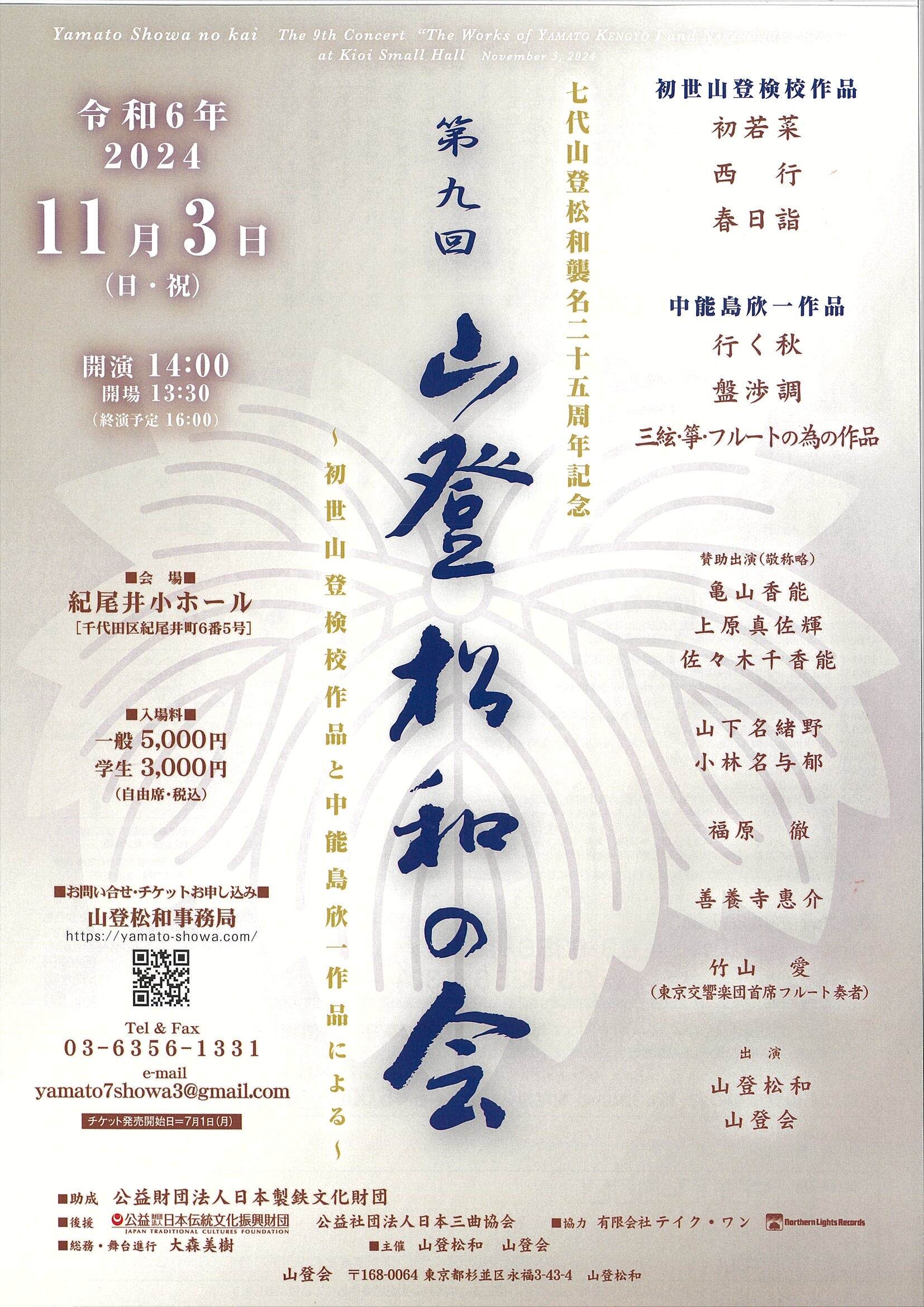 7代山登松和襲名25周年記念 第9回 山登松和の会 ~初世山登検校作品と中能島欣一作品による~ |
