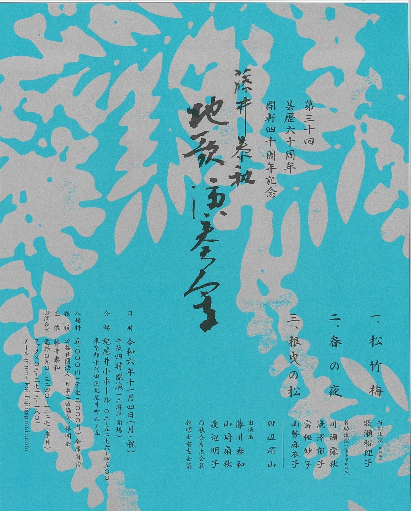 第30回 芸歴60周年 開軒40周年記念 藤井泰和 地歌演奏会