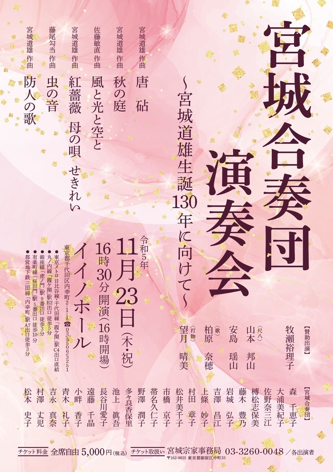 宮城合奏団演奏会~宮城道雄生誕130年に向けて~