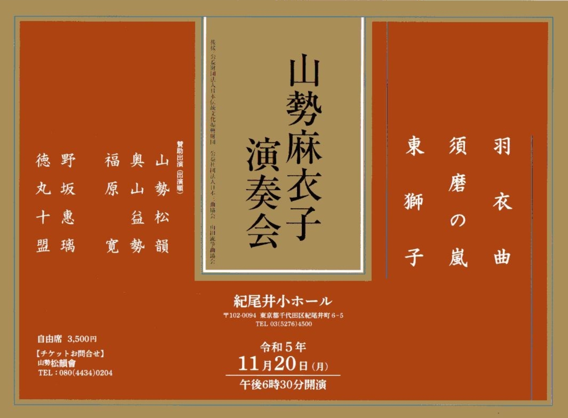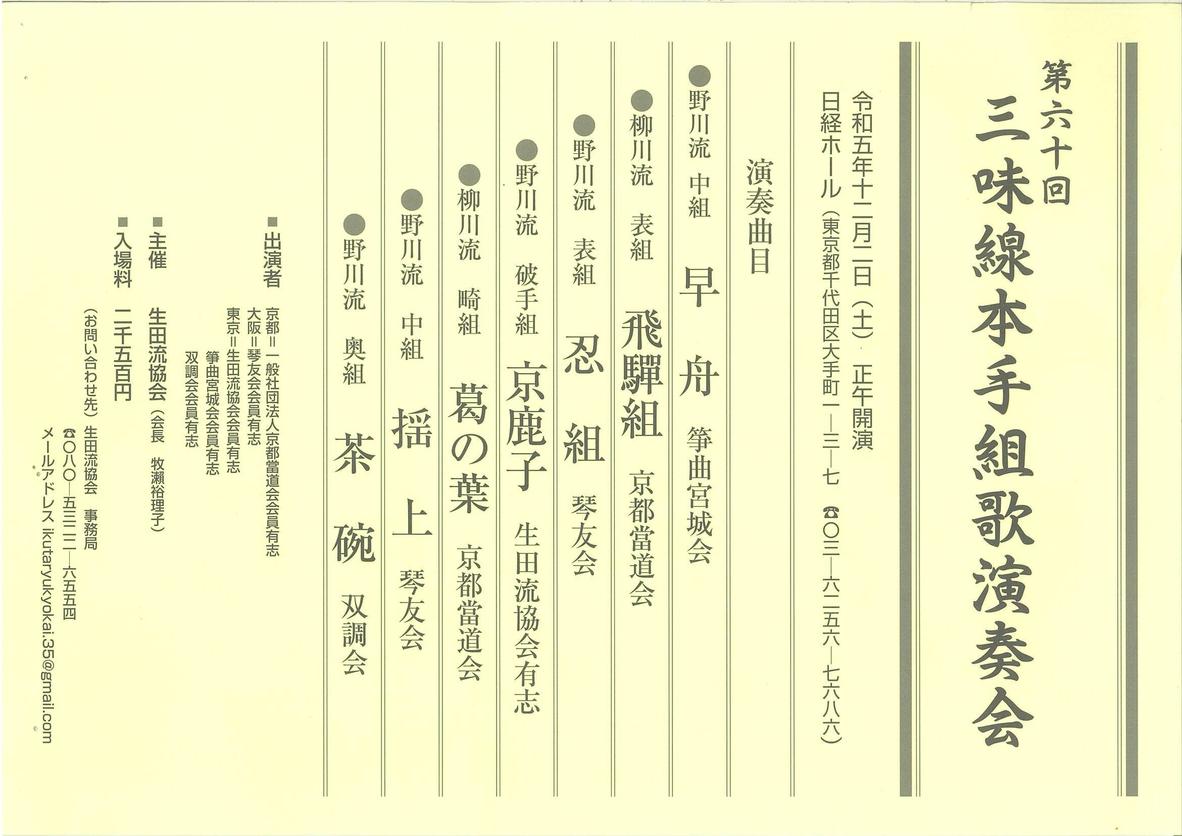| 後援 | 公益財団法人日本伝統文化振興財団、公益社団法人 日本三曲協会、山田流箏曲協会 |