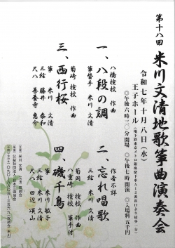 | 後援 | 公益財団法人日本伝統文化振興財団 / 公益財団法人ポーラ伝統文化振興財団 / 公益社団法人日本三曲協会 / 三ッの音会 |