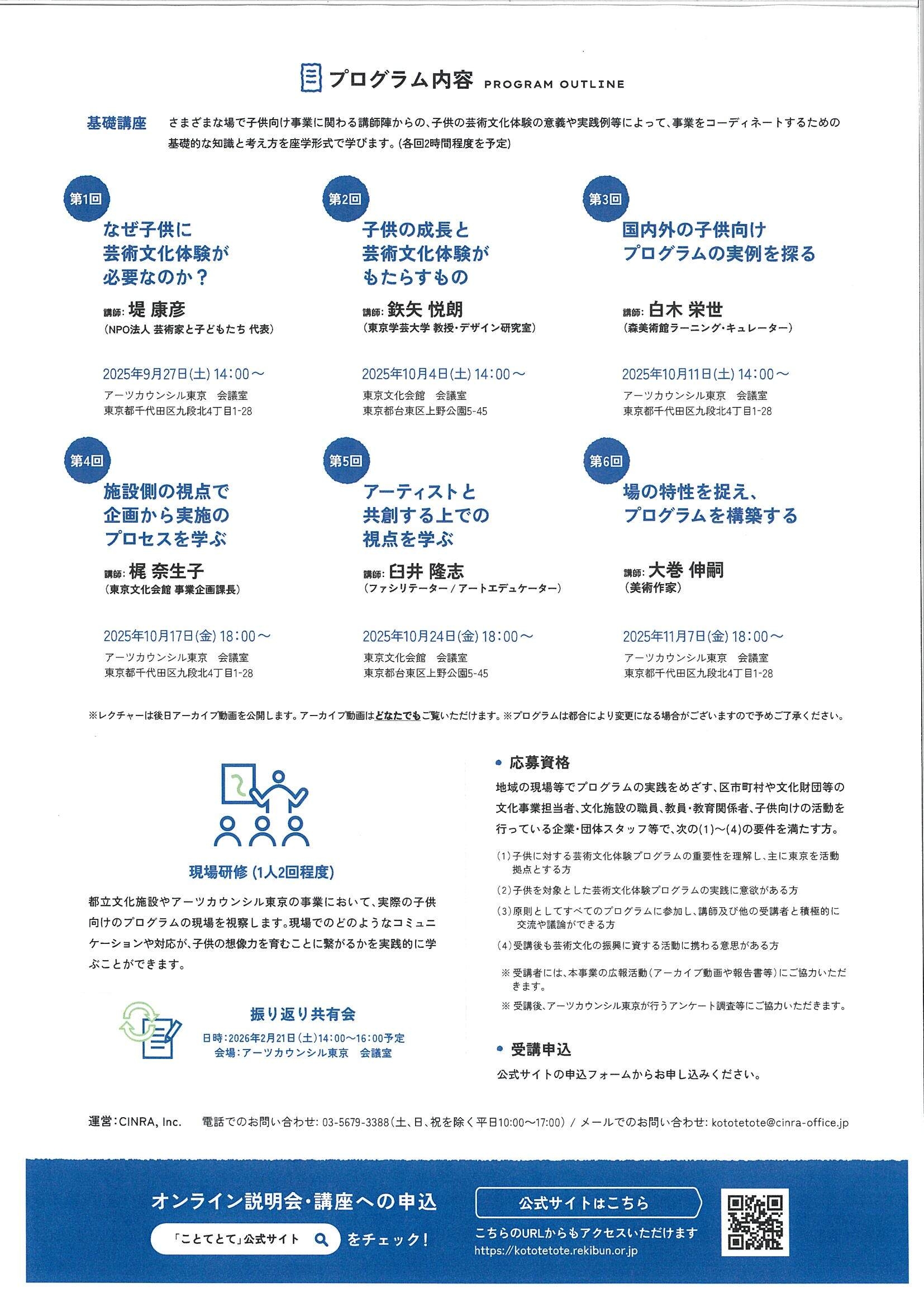 東京都とアーツカウンシル東京は今年度より、子供たちへ良質な芸術文化体験を届けるため、