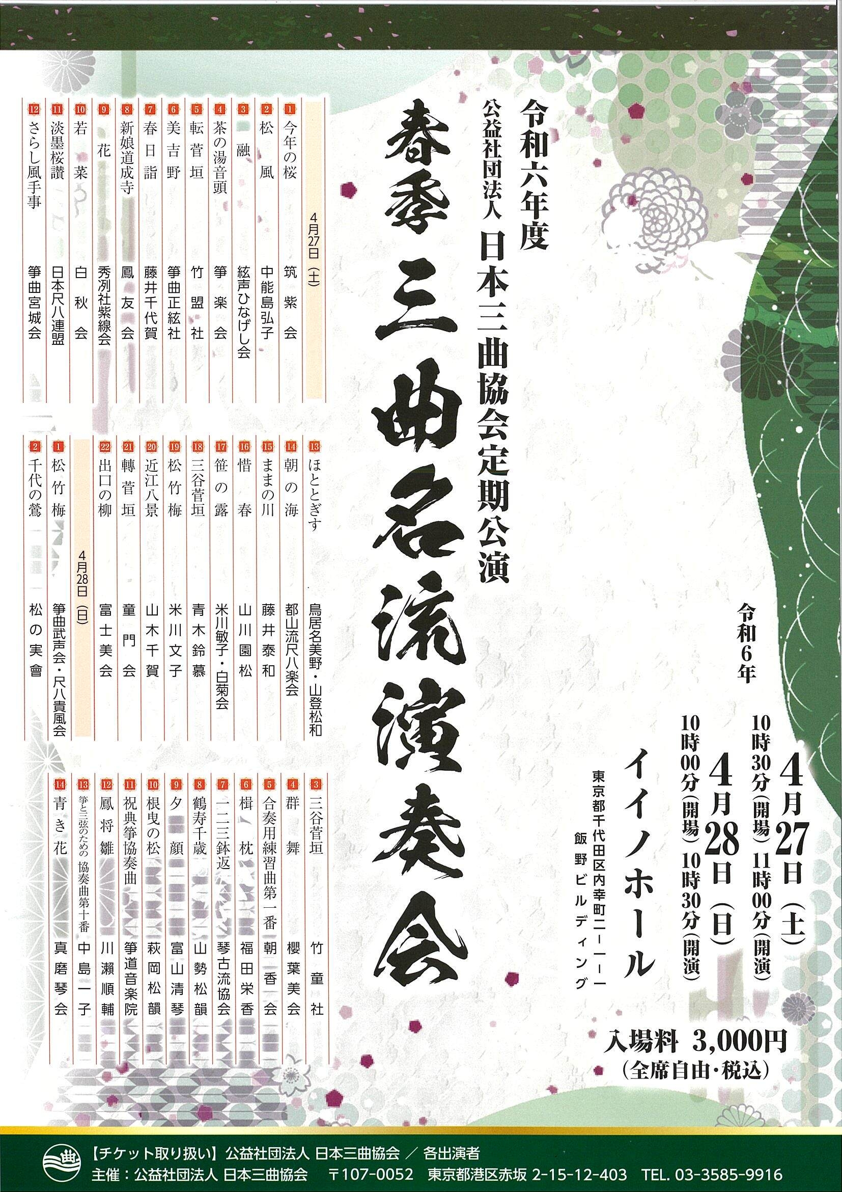 令和6年度 公益社団法人日本三曲協会定期公演